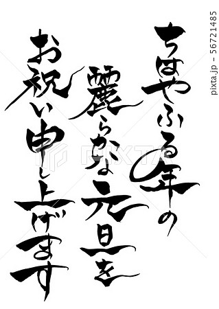 筆文字 「ちはやふる年の麗らかな元旦をお祝い申し上げます」