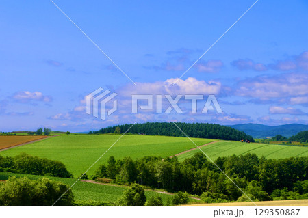 夏の北海道美瑛町の雄大な五稜の丘からの風景