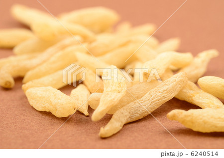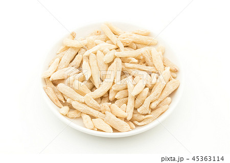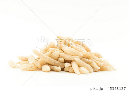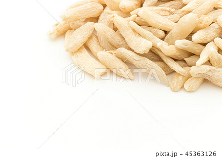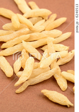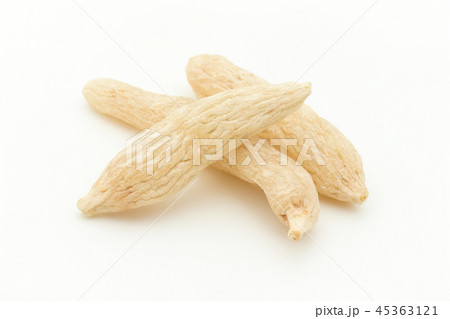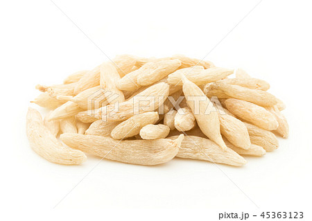 漢方処方用薬・ジャノヒゲの肥大した部分の根の麦門冬(バクモンドウ)・白バック縦位置