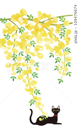 黄木香薔薇に黒猫