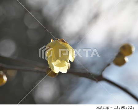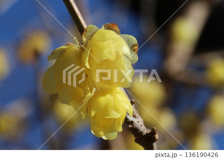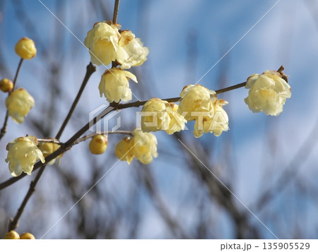 冬の公園に咲く黄色いロウバイ(蝋梅)の花