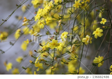 公園に咲いているこれらの黄色い花の名前は雲南黄梅(ウンナンオウバイ)です。