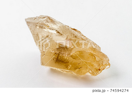 Crystal of Citrine yellow quartz mineral gem stone. White background
