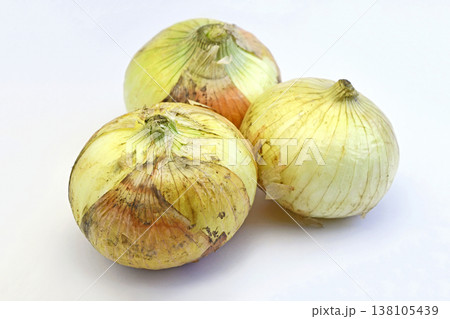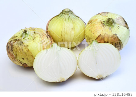 白背景に置いた黄玉ねぎと紫玉ねぎ