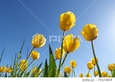 青空と黄色いチューリップ