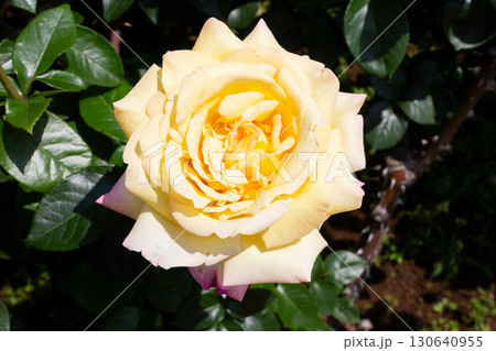 美しいイエローの春咲きの薔薇の花