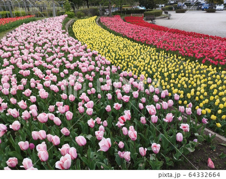 オランダ型風車や人工の滝がある霞ヶ浦総合公園のチューリップ