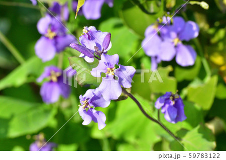 春に青紫色の花を咲かせた植物の花を、背景をぼかしアップで撮影した写真