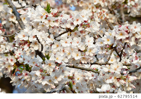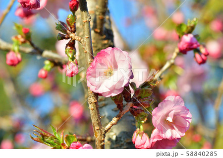 紅豊と推定されるサクラの樹の枝に咲いた花をアップで撮影した写真