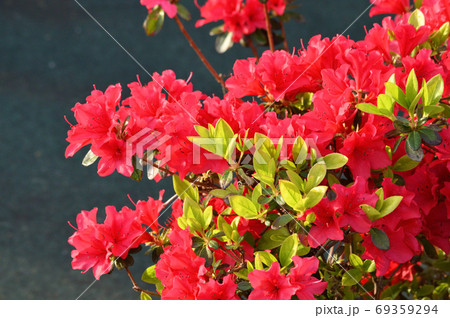 春に赤い花を咲かせたツツジと推定される樹木を撮影した写真