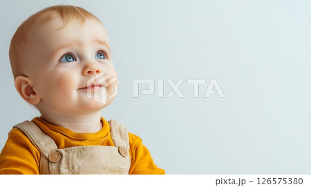 cute smiling baby boy in yellow shirt