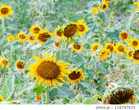 初秋のひまわり畑の景色