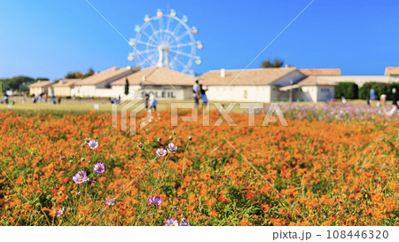 湘南三浦半島の神奈川県横須賀市の秋桜(コスモス)のソレイユの丘(遊園地)の冬