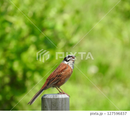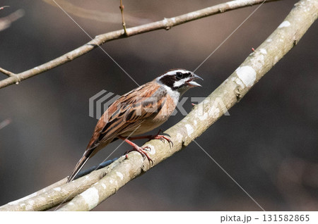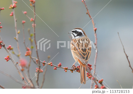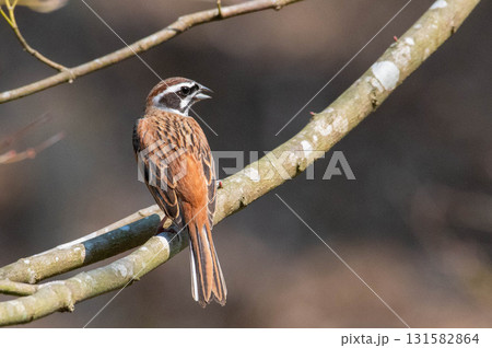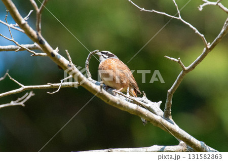 栃木県・渡良瀬遊水地の野鳥・ホオジロ(頬白、黄道眉、画眉鳥)