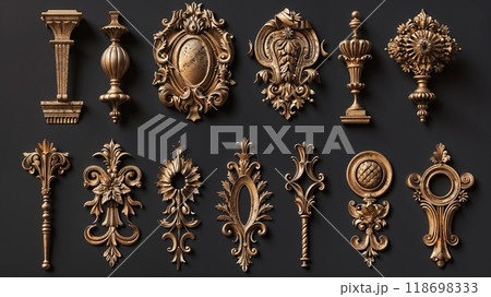 Set of Ornate Gold Bas-Relief Decorative Elements.