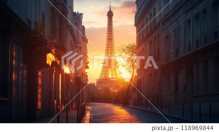 Generative AI Image of Majestic Eiffel Tower with Path Way Apartment Home House Sunset Sunrise Sky
