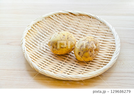 じゃがいも(品種:きたあかり)、生の状態、日本産、「黄金男爵」や「クリじゃがいも」などとも呼ばれる。