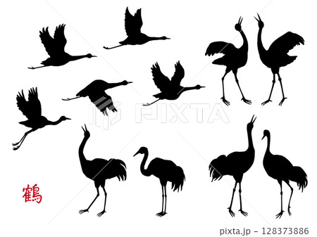 手描き 鶴のシルエット