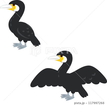 立っているカワウと翼を広げたカワウ