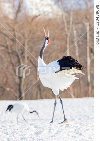 鳴くタンチョウ