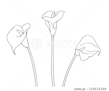 Doodle calla lily flower isolated on white. Sketch flower. Hand drawing line art. Outline vector stock illustration. EPS 10