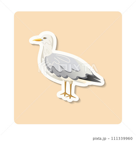 Seagull sticker illustration. Bird, cliff, water, beak. Editable vector graphic design.