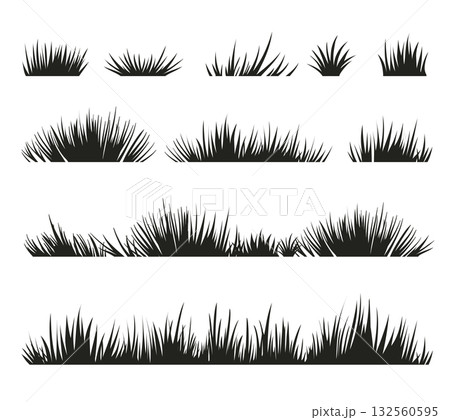 Set of black flat grass silhouette isolated on white background..