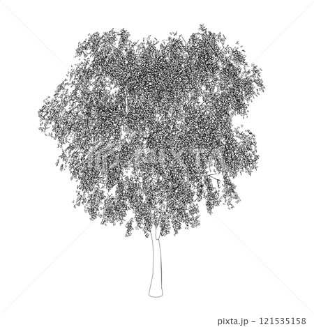 Outline of a detailed tree from black lines isolated on a white background. Vector illustration.
