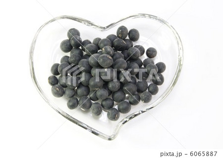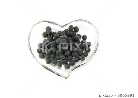 健康食品・・ハート型透明皿に黒豆・俯瞰アップ横位置