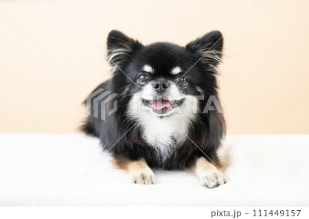 リビングで過ごす老犬 シニア犬 ロングコートチワワ