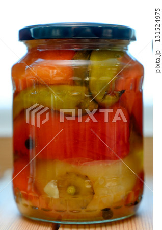 pickled sweet peppers in a glass jar