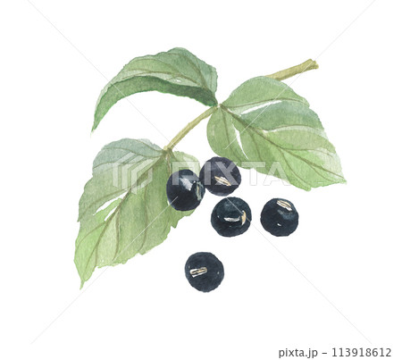 黒大豆 豆 葉付き 実り白背景【水彩】