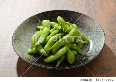 黒皿の茹でた枝豆