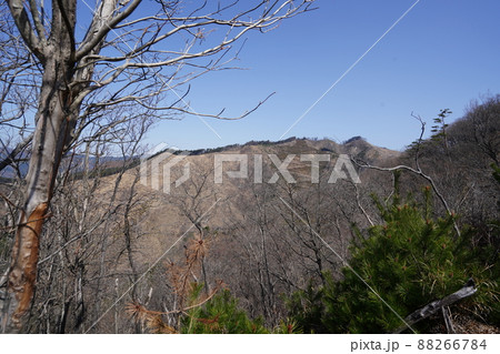 桐生市菱町から仙人ケ岳登山コースを登る。黒川左岸の尾根の仙人ケ岳登山道から南、足利市方面