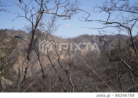 桐生市菱町から仙人ケ岳登山コースを登る。黒川左岸の尾根の仙人ケ岳登山道から対岸、前仙人ケ岳方面