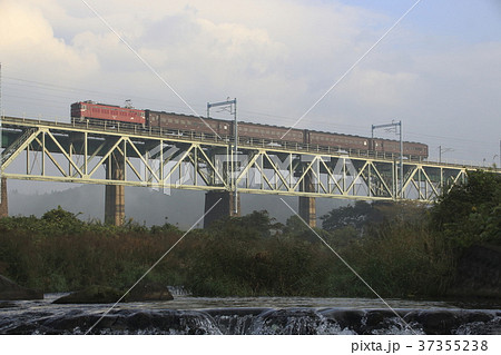 東北本線・黒川鉄橋を渡る貨物列車(交流電気時代)