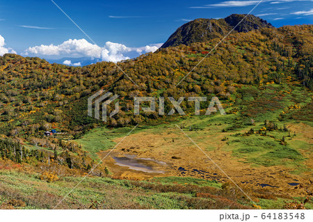 初秋の妙高連峰・黒沢池湿原の風景