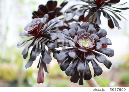 温室の中で咲いている黒法師 多肉植物