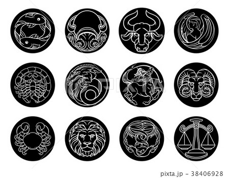 Zodiac astrology horoscope star signs symbols set