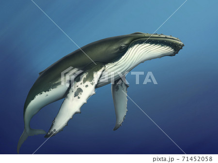 Whale albino under water realistic illustration of a copis. Humpback albino whale in the open sea.