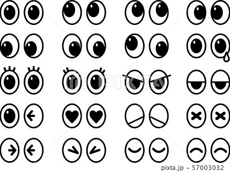 驚いたり注目する人物の大きな目玉と黒目のイラスト