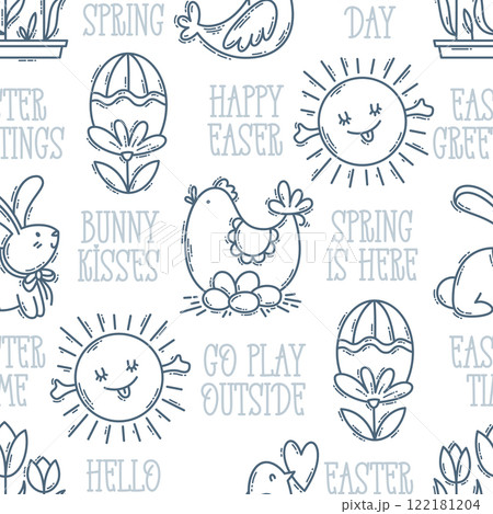 Easter hand drawn engraving doodle and lettering seamless pattern