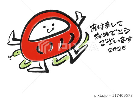 筆書き 可愛いだるまの年賀状 令和七年 2025