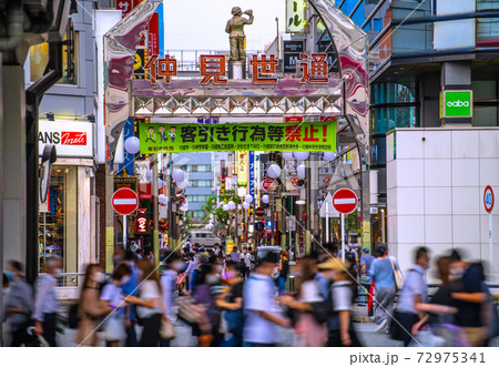 日本の川崎都市景観 川崎駅前の「仲見世通」などを望む(増加した人出)=2020年7月1日
