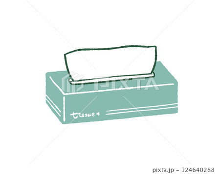 水色背景にティッシュケースと散らばるティッシュごみの3Dイラスト