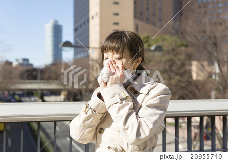 病気 女性 鼻をかむ 花粉症 風邪 マスク インフルエンザ 汎用