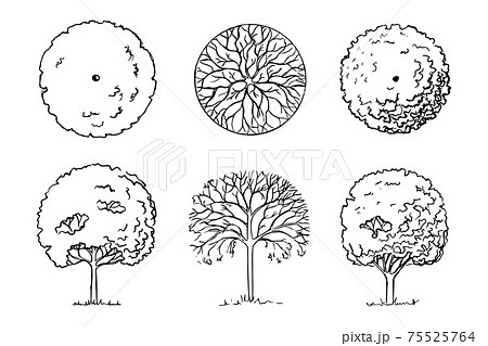 Sketch of deciduous trees set three plants