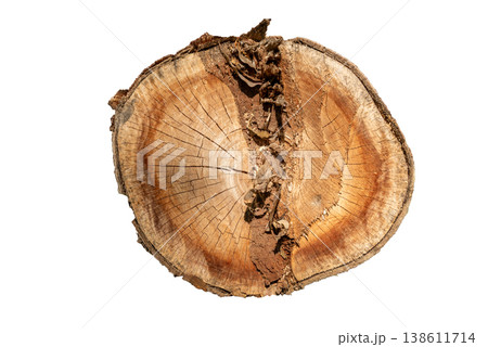 Isolated Cross Section of a Natural Tree Trunk with Visible Annual Rings