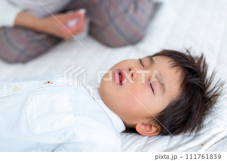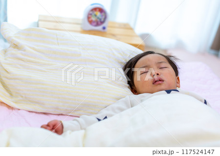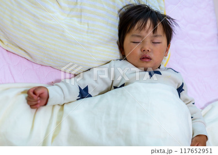 2歳幼児の寝顔アップ