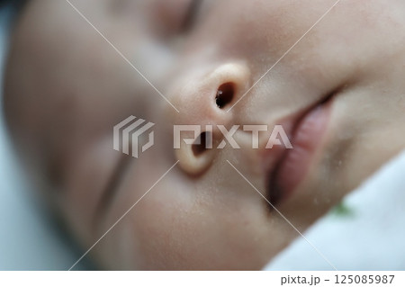 赤ちゃんの鼻に鼻くそがついている